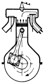 [31] A 2-stroke cycle engine completes 360° of crankshaft rotation in what it takes a 4-stroke cycle engine 720° to accomplish. A 3-cylinder two-stroke cycle engine therefore has the same capacity to do work as a 6-cylinder four-stroke cycle engine. For this reason the former type of engine is both more compact and lighter than the latter type.