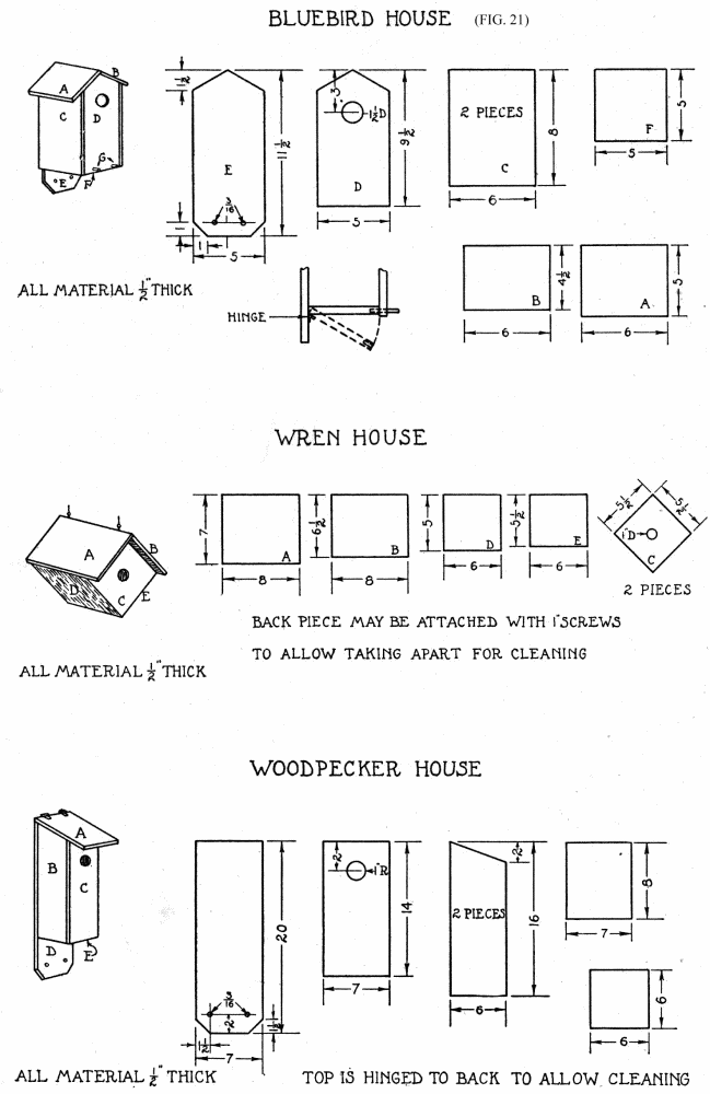 FIG. 11. HOUSES FOR WRENS AND BLUEBIRDS.