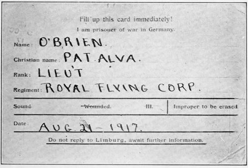 What happened to me is narrated in these pages. I wish, instead, I could tell the story of each of my brave comrades, for not one of them was downed, I am sure, without upholding the best traditions of the R. F. C. Unfortunately, however, of the eighteen who sailed on the Megantic last May, I happened to be the first to fall into the hands of the Huns, and what befell my comrades after that, with one exception, I know only second hand.