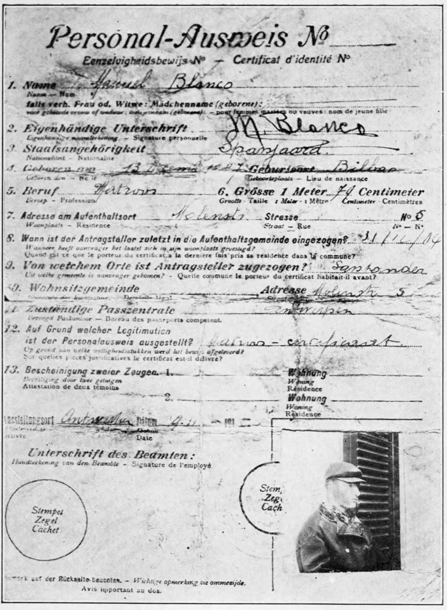 | The Forged Passport Prepared in a Belgian City to Aid Lieutenant O'Brien's Escape into Holland, but Which Was Never Used | " | 164 |