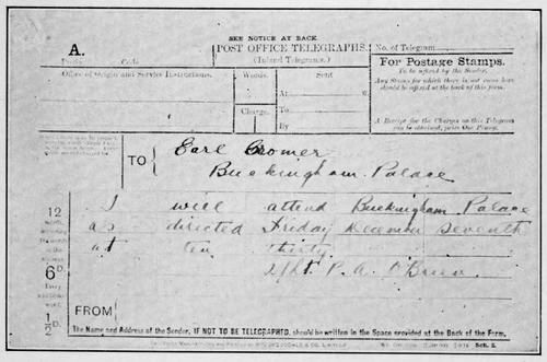 | Copy of Telegram Inviting Lieutenant O'Brien to Meet King George | " | 270 |