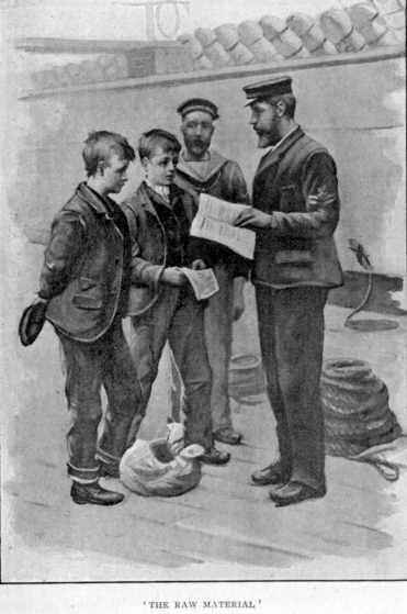 “All right, Bowling, I’m glad your memory is so good,” replied Captain Mordaunt, standing on the pontoon and looking down at us, with a smile on his cheery, handsome face. “You will remember, too, that my word was always as good as any bond, and when I say a thing I mean a thing! I’m stopping for a day or two at the Keppel’s Head, and if you’ll come over there this evening after dinner, or send young Tom, should you like that better than a glass of grog, why, I will give you a letter for him to take on board the Saint Vincent to the commander, who’s an old friend of mine like yourself, and we’ll have young Tom entered on the books of the training-ship in a brace of shakes!”