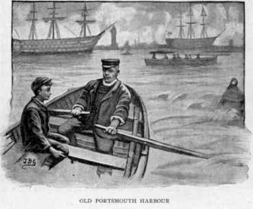 “Beg pardon, cap’en, I didn’t know it, in course, or wouldn’t have forgot my manners,” said father, raising his hand in salute; and then, gripping the loom of his oar, he started a long steady stroke towards the pontoon at the foot of the railway jetty, on the Portsea shore, abreast of the old Victory; I following suit, of course. “You won’t mind an old seaman, sir, ’gratulatin’ you, sir, on getting your step so young? Ship my rullocks, why, it do seem but t’other day when you were a mite of a middy along o’ me!”