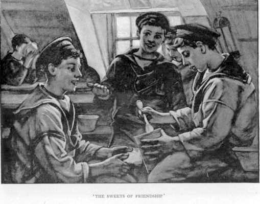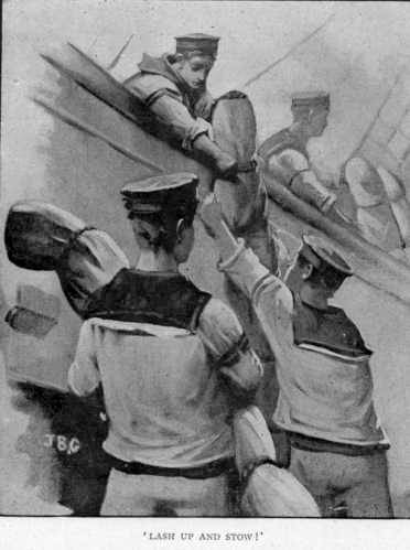 This, of course, made us all laugh, even mother joining in, though the joke was certainly against her; and taking advantage of the opportunity thus afforded of ‘throwing oil on the troubled waters,’ little Jenny went on to speak of the advantages to be gained by my going to sea and earning my living as a gallant seaman in the service of my country, pointing out to mother how I had always hankered after father’s profession, and that she was sure I would never be contented in any shore billet, and might possibly go to the bad if I had my inclinations thwarted!