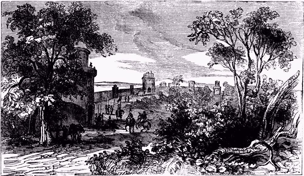 The wall extended across the island, from the mouth of the Tyne, on the German Ocean, to the Solway Frith—nearly seventy miles. It was twelve feet high, and eight feet wide. It was faced with substantial masonry on both sides, the intermediate space being likewise filled in with stone. When it crossed bays or morasses, piles were driven to serve as a foundation. Of course, such a wall as this, by itself, would be no defense. It was to be garrisoned by soldiers, being intended, in fact, only as a [page 30] means to enable a smaller number of troops than would otherwise be necessary to guard the line. For these soldiers there were built great fortresses at intervals along the wall, wherever a situation was found favorable for such structures. These were called stations. The stations were occupied by garrisons of troops, and small towns of artificers and laborers soon sprung up around them. Between the stations, at smaller intervals, were other smaller fortresses called castles, intended as places of defense, and rallying points in case of an attack, but not for garrisons of any considerable number of men. Then, between the castles, at smaller intervals still, were turrets, used as watch-towers and posts for sentinels. Thus the whole line of the wall was every where defended by armed men. The whole number thus employed in the defense of this extraordinary rampart was said to be ten thousand. There was a broad, deep, and continuous ditch on the northern side of the wall, to make the impediment still greater for the enemy, and a spacious and well-constructed military road on the southern side, on which troops, stores, wagons, and baggage of every kind could be readily transported along the line, from one end to the other.