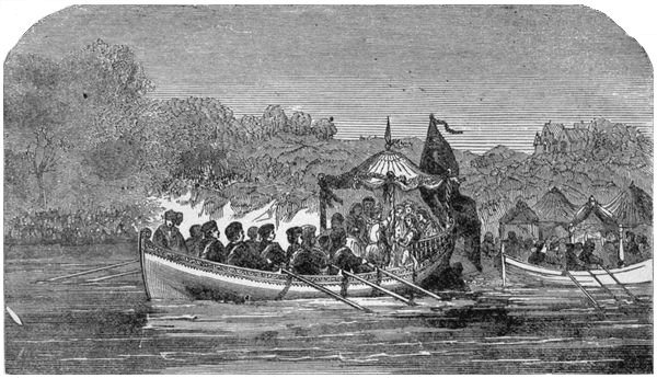 The body remained lying thus during the day. When night came, it was taken away and carried down to Blackfriar's—a landing upon the river nearly opposite Saint Paul's. Here there was a boat lying ready to receive the hearse. It was lighted with torches, and the watermen were at their oars. The hearse was put on board, and the body was thus borne away, over the dark waters of the river, to the (p. 309) lonely village of Chertsey, where it had been decided that he should be interred.