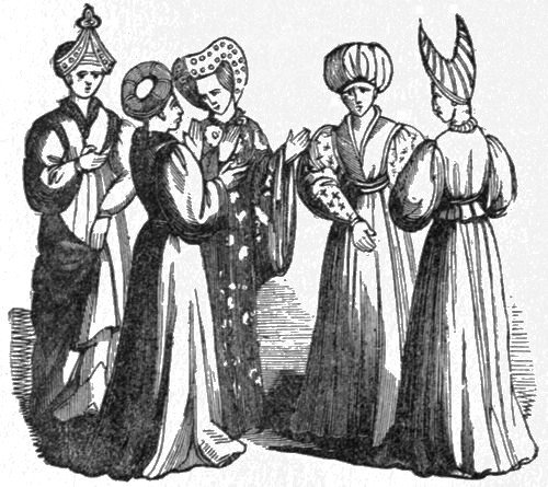 Their courts.Each great noble lived in state in his castle, like a prince or a petty king. Those of the highest class had their privy councilors, treasurers, marshals, constables, stewards, secretaries, heralds, pursuivants, pages, guards, trumpeters—in (p. 032) short, all the various officers that were to be found in the court of the sovereign. To these were added whole bands of minstrels, mimics, jugglers, tumblers, rope-dancers, and buffoons. Besides these, there was always attached to each great castle a large company of priests and monks, who performed divine service according to the usages of those times, in a gorgeously-decorated chapel built for this purpose within the castle walls.
