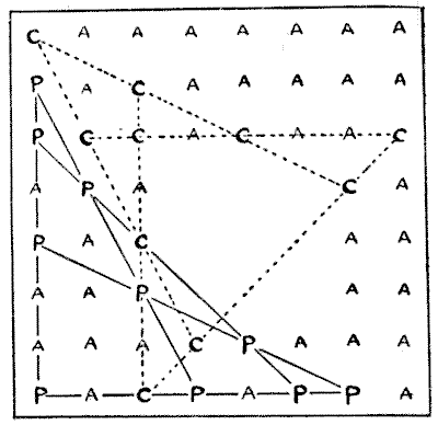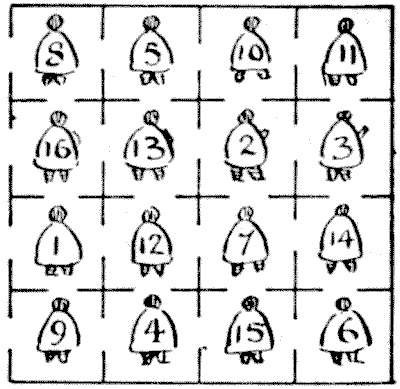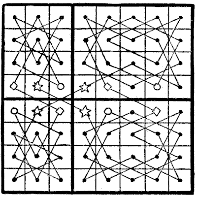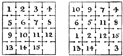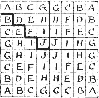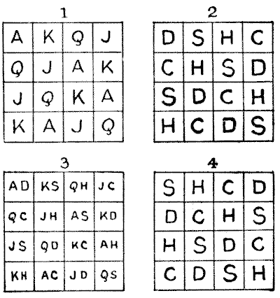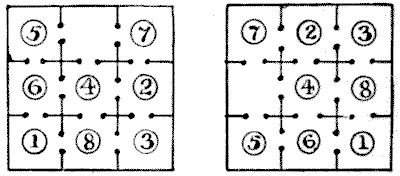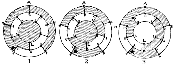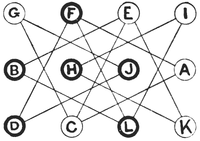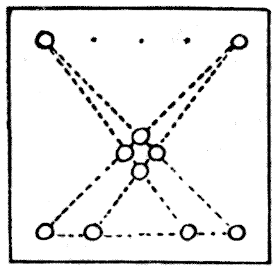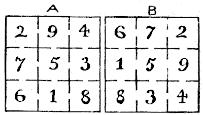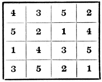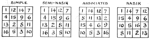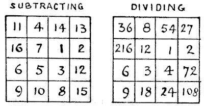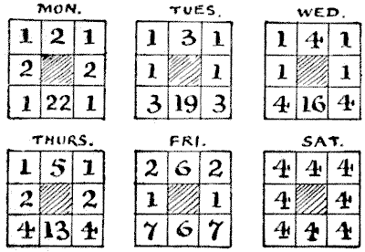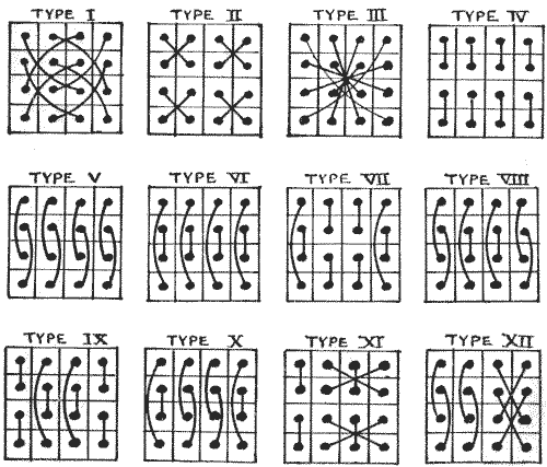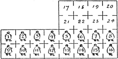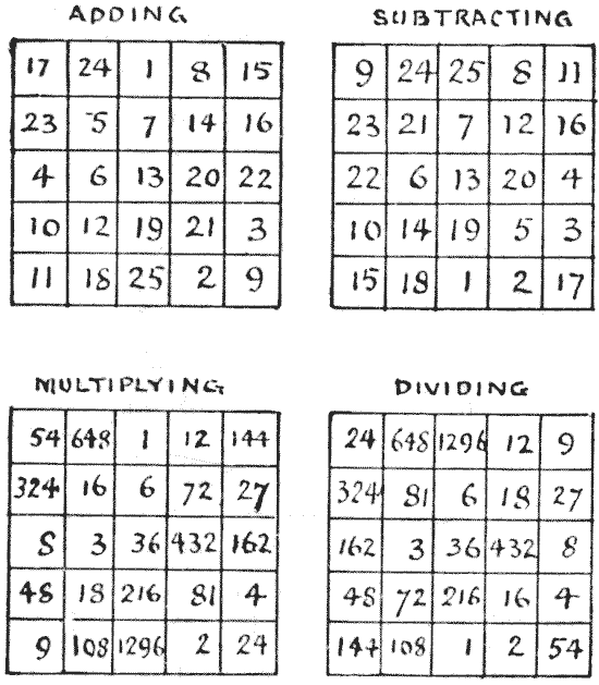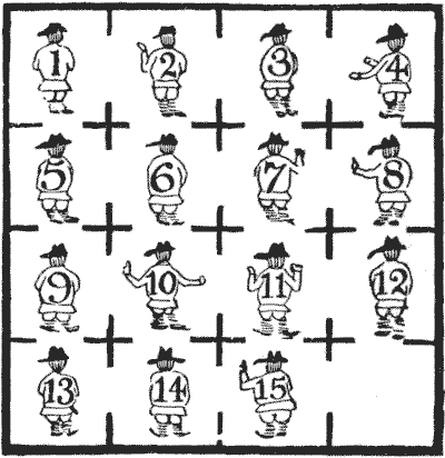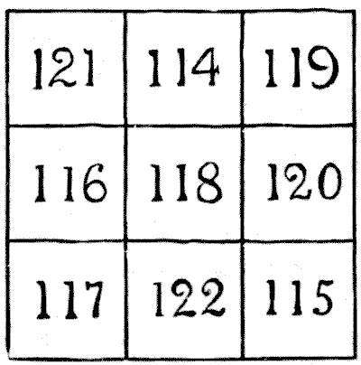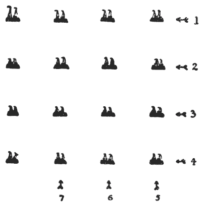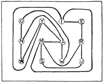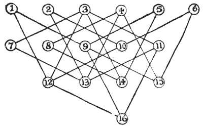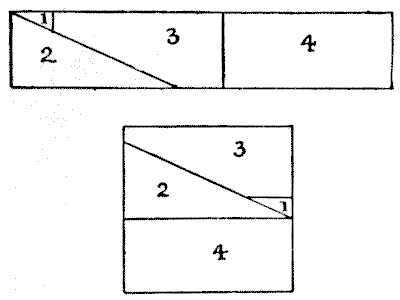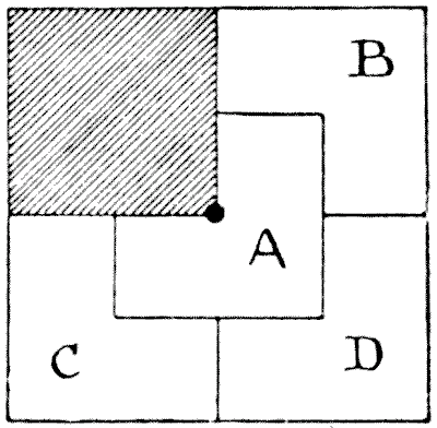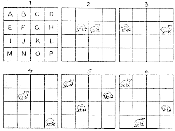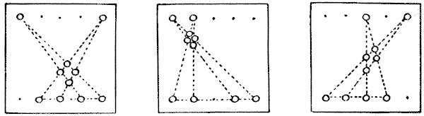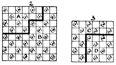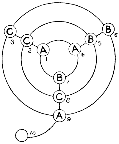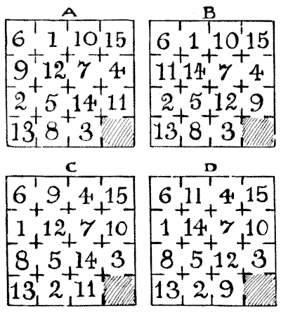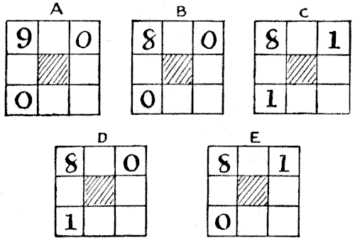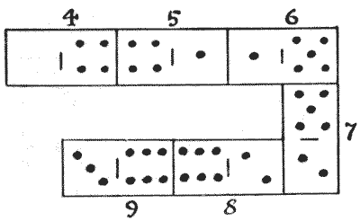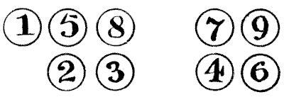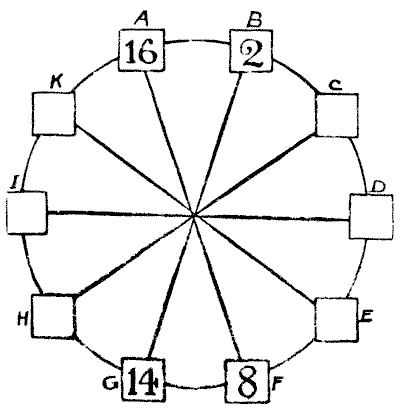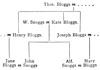 For centuries it has been a favourite method of propounding arithmetical puzzles to pose them in the form of questions as to the age of an individual. They generally lend themselves to very easy solution by the use of algebra, though often the difficulty lies in stating them Pg 7correctly. They may be made very complex and may demand considerable ingenuity, but no general laws can well be laid down for their solution. The solver must use his own sagacity. As for puzzles in relationship or kinship, it is quite curious how bewildering many people find these things. Even in ordinary conversation, some statement as to relationship, which is quite clear in the mind of the speaker, will immediately tie the brains of other people into knots. Such expressions as "He is my uncle's son-in-law's sister" convey absolutely nothing to some people without a detailed and laboured explanation. In such cases the best course is to sketch a brief genealogical table, when the eye comes immediately to the assistance of the brain. In these days, when we have a growing lack of respect for pedigrees, most people have got out of the habit of rapidly drawing such tables, which is to be regretted, as they would save a lot of time and brain racking on occasions.