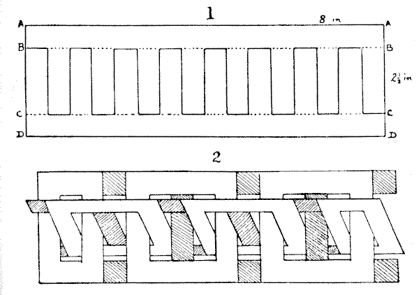 The Chinese are a curious people, and have strange inverted ways of doing things. It is said that they use a saw with an upward pressure instead of a downward one, that they plane a deal board by pulling the tool toward them instead of pushing it, and that in building a house they first construct the roof and, having raised that into position, proceed to work downwards. In money the currency of the country consists of taels of fluctuating value. The tael became thinner and thinner until 2,000 of them piled together made less than three inches in height. The common cash consists of brass coins of varying thicknesses, with a round, square, or triangular hole in the centre, as in our illustration.