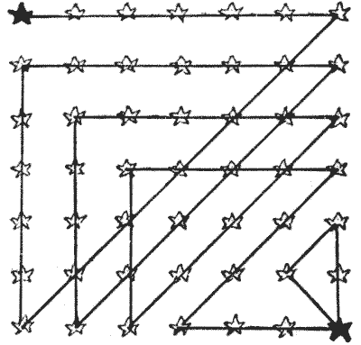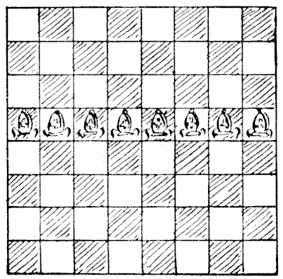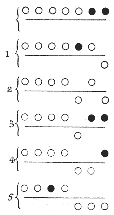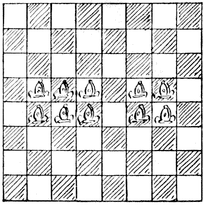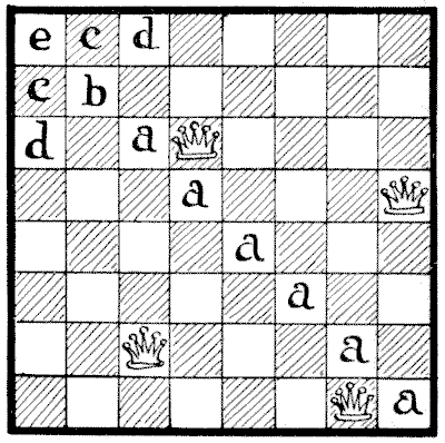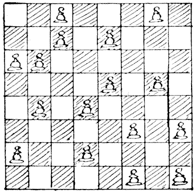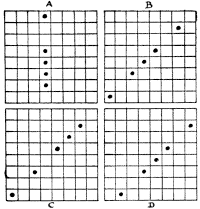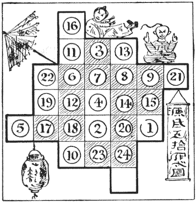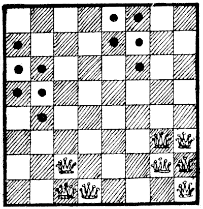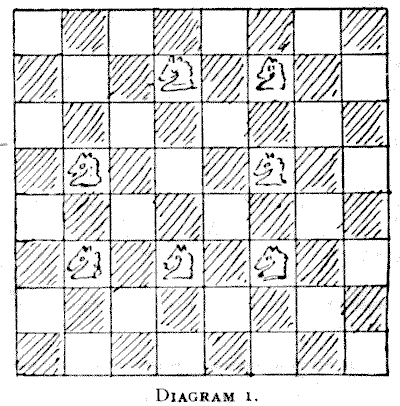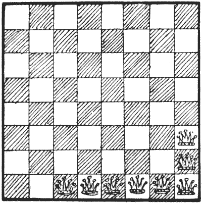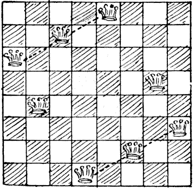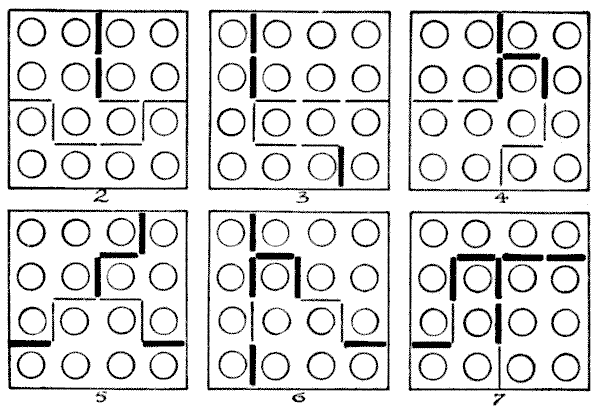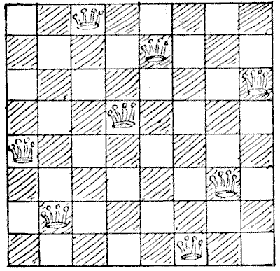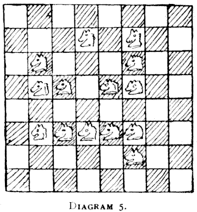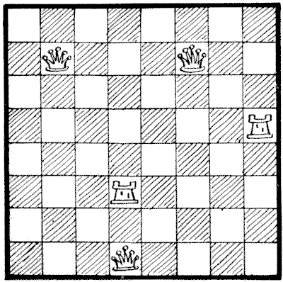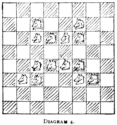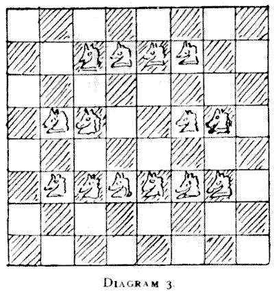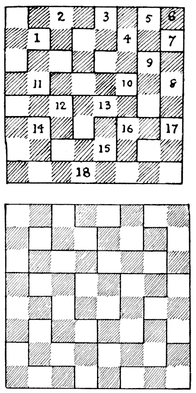 On the question of Mathematical Puzzles in general there is, perhaps, little more to be said than I have written elsewhere. The history of the subject entails nothing short of the actual story of the beginnings and development of exact thinking in man. The historian must start from the time when man first succeeded in counting his ten fingers and in dividing an apple into two approximately equal parts. Every puzzle that is worthy of consideration can be referred to mathematics and logic. Every man, woman, and child who tries to "reason out" the answer to the simplest puzzle is working, though not of necessity consciously, on mathematical lines. Even those puzzles that we have no way of attacking except by haphazard attempts can be brought under a method of what has been called "glorified trial"—a system of shortening our labours by avoiding or eliminating what our reason tells us is useless. It is, in fact, not easy to say sometimes where the "empirical" begins and where it ends.