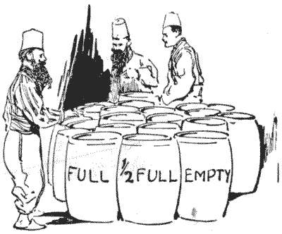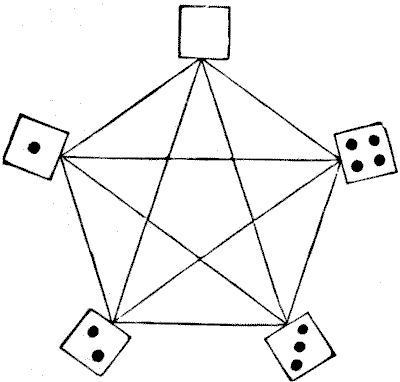There is perhaps no class of puzzle over which people so frequently blunder as that which involves what is called the theory of probabilities. I will give two simple examples of the sort of puzzle I mean. They are really quite easy, and yet many persons are tripped up by them. A friend recently produced five pennies and said to me: "In throwing these five pennies at the same time, what are the chances that at least four of the coins will turn up either all heads or all tails?" His own solution was quite wrong, but the correct answer ought not to be hard to discover. Another person got a wrong answer to the following little puzzle which I heard him propound: "A man placed three sovereigns and one shilling in a bag. How much should be paid for permission to draw one coin from it?" It is, of course, understood that you are as likely to draw any one of the four coins as another.