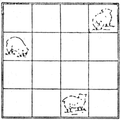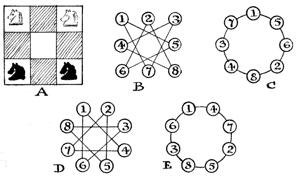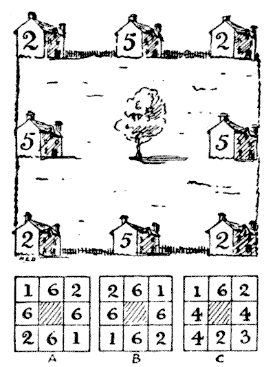 As for the question of difficulty, some of the puzzles, especially in the Arithmetical and Algebraical category, are quite easy. Yet some of those examples that look the simplest should not be passed over without a little consideration, for now and again it will be found that there is some more or less subtle pitfall or trap into which the reader may be apt to fall. It is good exercise to cultivate the habit of being very wary over the exact wording of a puzzle. It teaches exactitude and caution. But some of the problems are very hard nuts indeed, and not unworthy of the attention of the advanced mathematician. Readers will doubtless select according to their individual tastes.