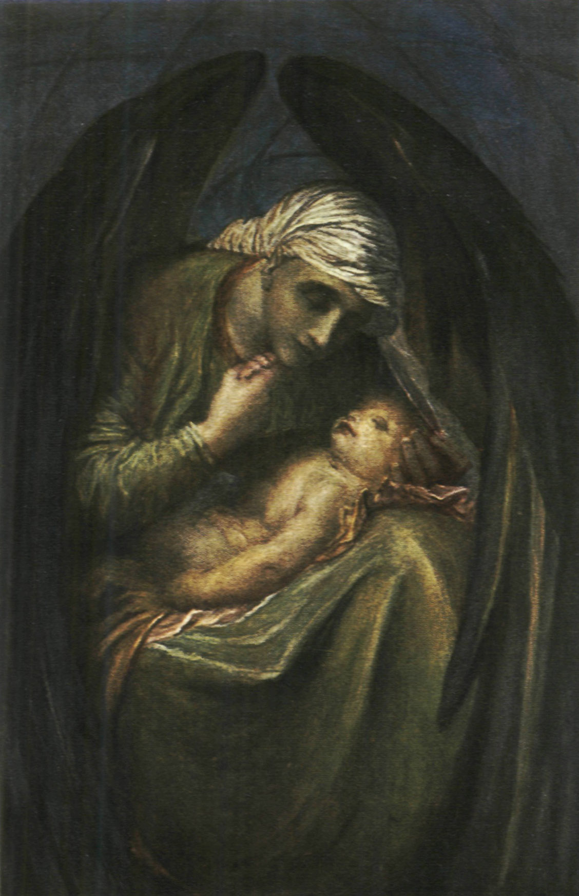 A little child lying in the lap of the winged figure of Death. Death, ever to Watts a silent angel of pity, "takes charge of Innocence, placing it beyond the reach of evil." It was first exhibited at the Winter Exhibition of the New Gallery, 1896, and was given to the nation in 1897. It is now at the Tate Gallery.]