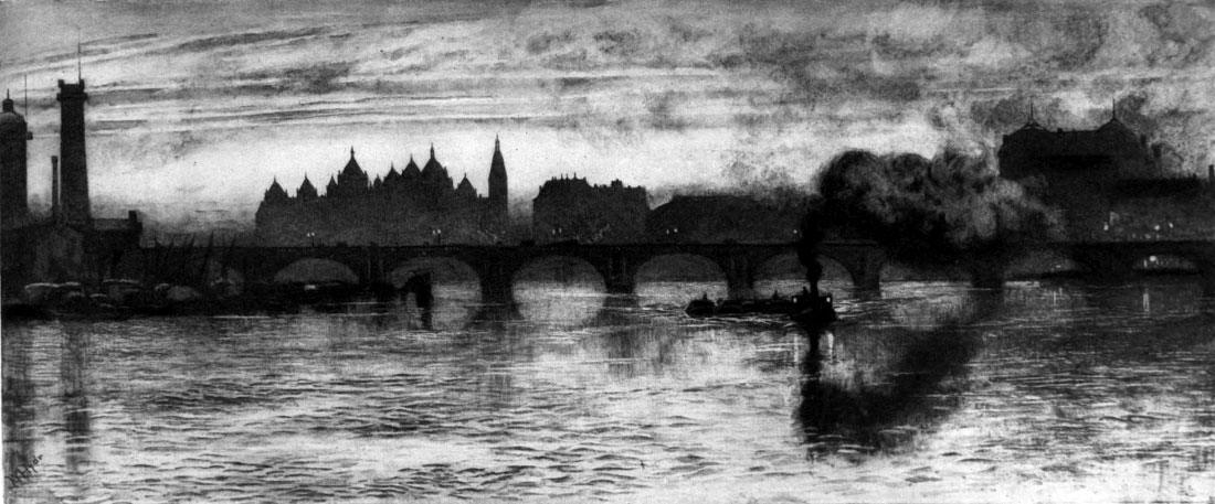 True, now and then there is a region or tract of buildings—‘works,’ these seem to be, not warehouses—that touch the extremity of possible ugliness and dreariness, and are flat-roofed, rectangular, and, without exaggeration, black. These are very few—two or three at the most—and all on the right bank. Otherwise the skyline of buildings is low, broken, pointed, and very various.